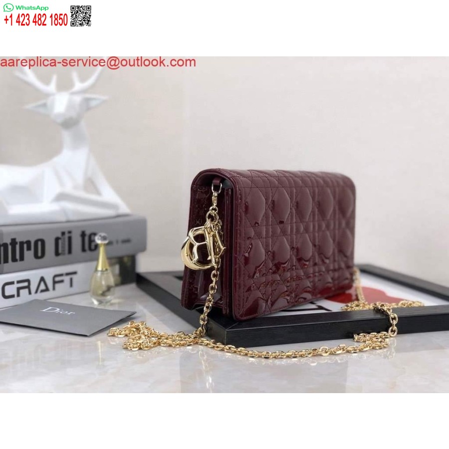 طبق الاصل ديور S0204 سيدة ديور الحقيبة براءات الاختراع كاناج جلد العجل النبيذ الأحمر
