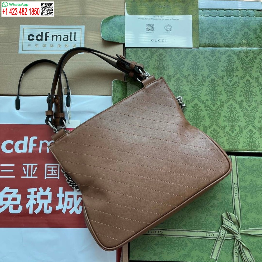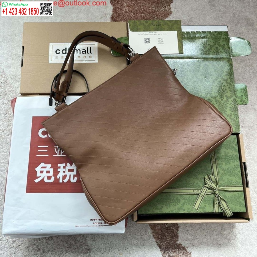 طبق الاصل غوتشي 751516 بلوندي حقيبة متوسطة الحجم من الجلد البني