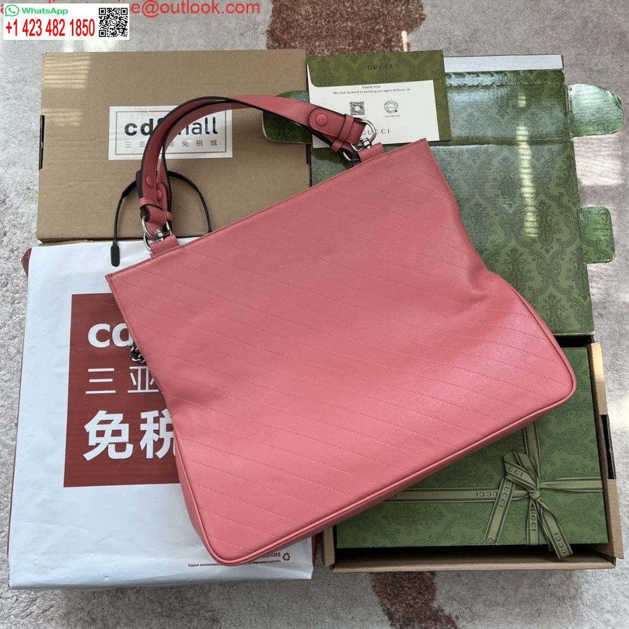 طبق الأصل غوتشي 751516 بلوندي حقيبة حمل متوسطة من الجلد الوردي